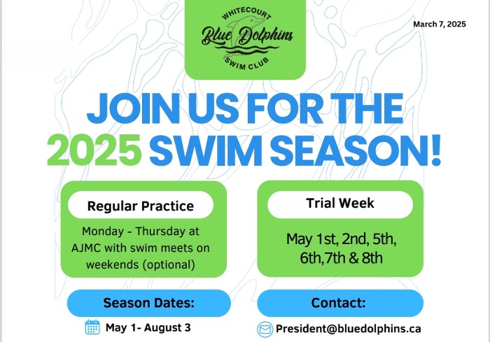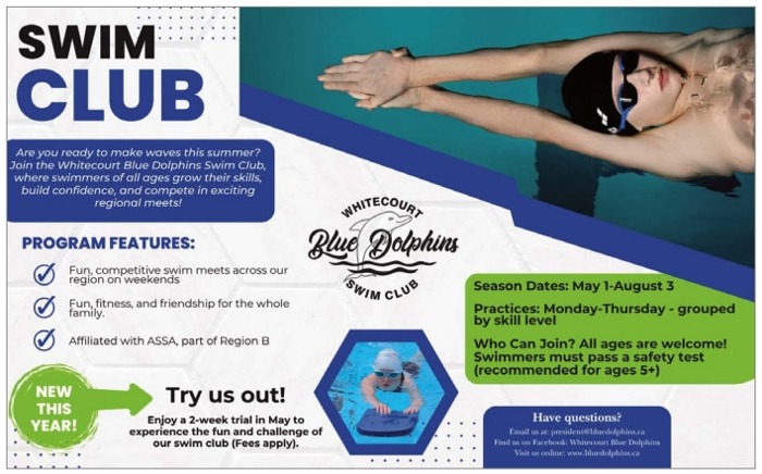 Welcome to the home of the Whitecourt Blue Dolphins Swim Club. We are a member of the Alberta Summer Swim Association (ASSA) and use the Allan & Jean Millar Centre in Whitecourt, AB as our home pool.